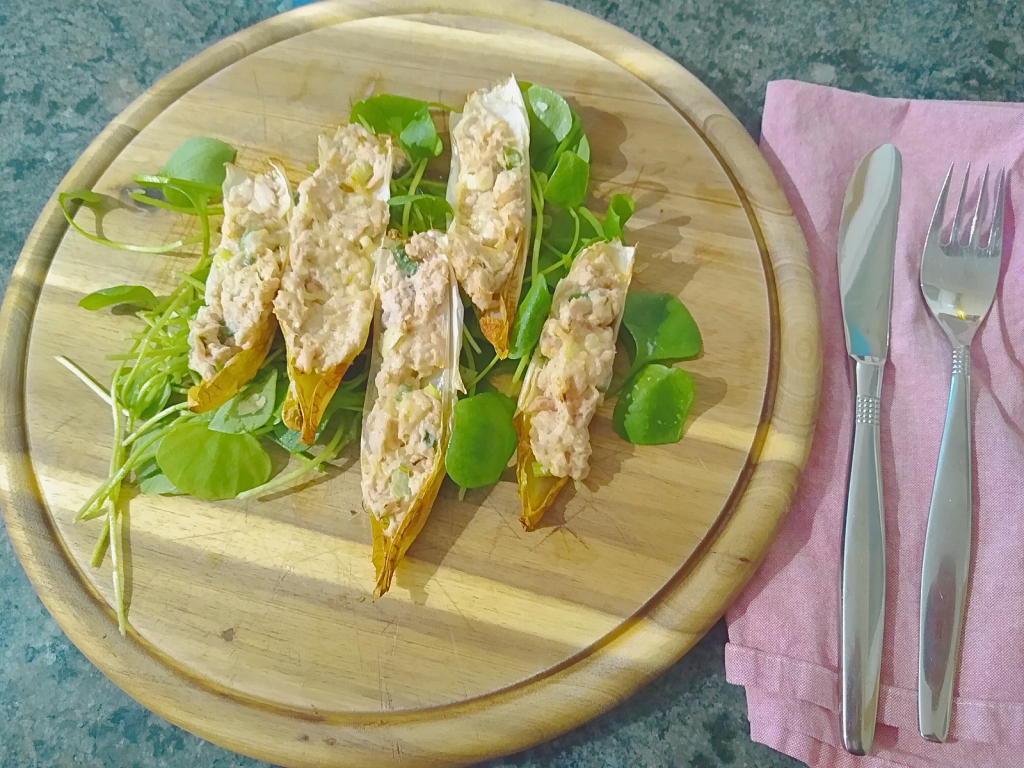 For lunch today, I was inspired by my endive heads, chili mango cheese, and Postelein salad to make these air fryer tuna melts. I ate them at my desk, happy to be home.