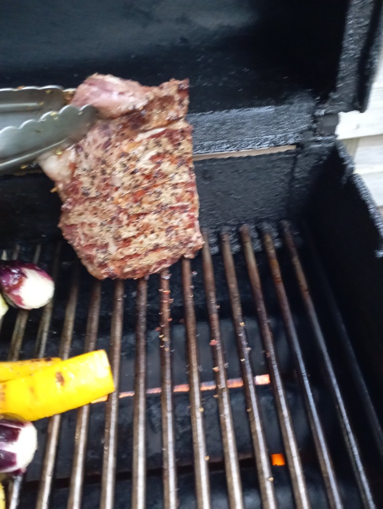 - Take the steak out of the fridge about an hour before grilling. Spray or rub a bit of olive oil on the steak as it helps the spices adhere. I know, I know, why would a fatty steak need added oil? Well, it really shouldn‘t but I like the way it moisturises the seasoning. Skip the oil if you want.