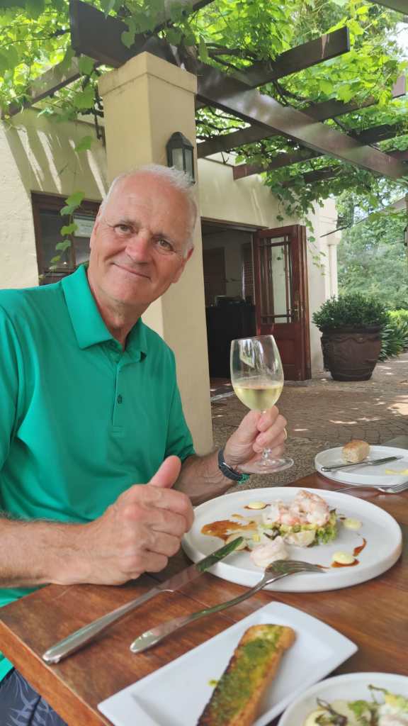 After our second round of golf at De Zalze we enjoyed lunch on a terrace at the Kleine Zalze Restaurant located just down the road from the course. Not only was the food and wine delicious, but as found during our entire stay—dining out is incredibly inexpensive and the food quality top-notch. Not once did we have a bad meal.