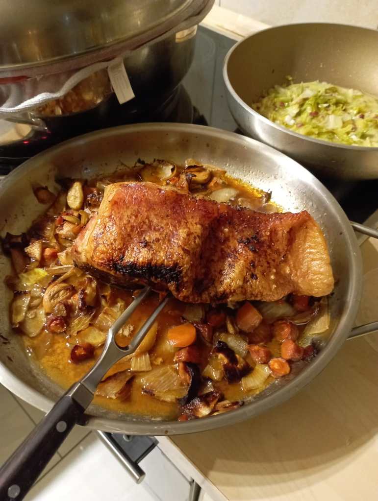 Our regular Saturday market pork butcher Feddern was on vacation, so Ralph picked up the pork roast from Hoose Landschlachterei, another one of our favourite vendors and our supplier of cow heart and liver for Mogly’s dog food.