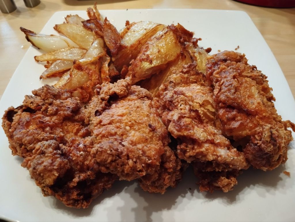 Our son-in-law Jake ran a restaurant inside a bar in Toronto serving deep fried chicken with various levels of heat, right up to ghost pepper 🥵. He actually travelled throughout the Southern States trying different versions to develop his recipe. We stay away from heat, but his delicious chicken was a great inspiration.