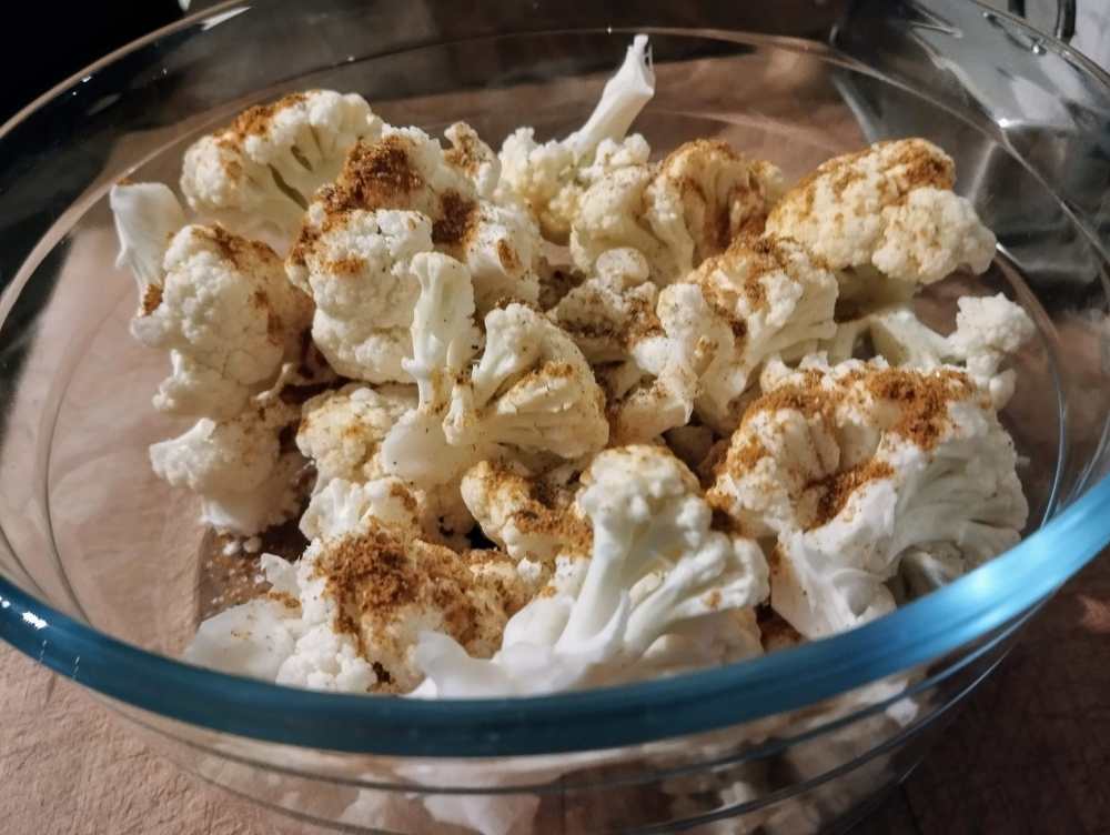 When air-fried, cauliflower develops a crispy exterior while remaining tender on the inside. Adding curry spice to cauliflower transforms this humble veg into a fragrant warm side.