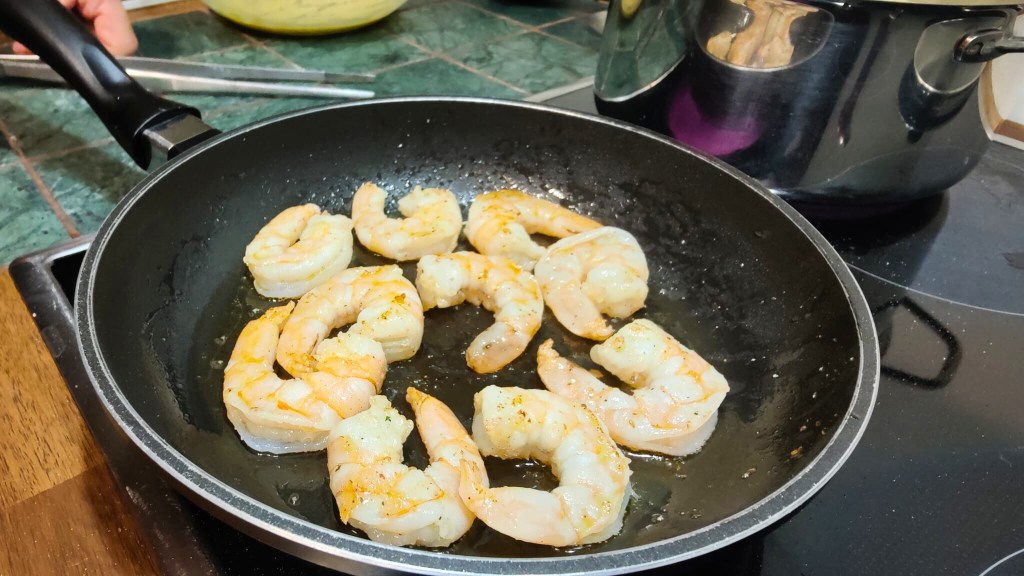 - Cook the shrimp for about 1-2 minutes per side until opaque and lightly golden.