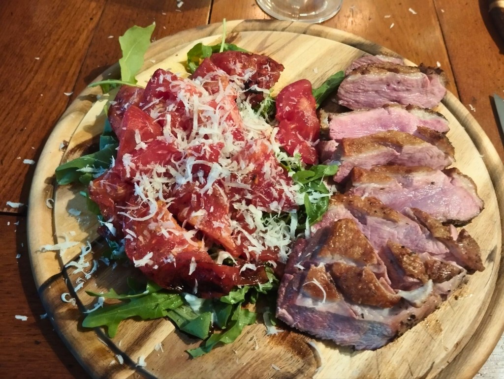 When our Lamb Guy has duck breasts in the summer months, Ralph likes to grill them on a charcoal grill for a smoky flavour. Since the grill is already heated, and while your duck breasts are resting, it’s the perfect opportunity to prepare a side dish such as charred tomatoes served on a bed of arugula topped with mozzarella and Parmesan cheese.